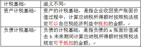 小结:资产、负债计税基础比较表