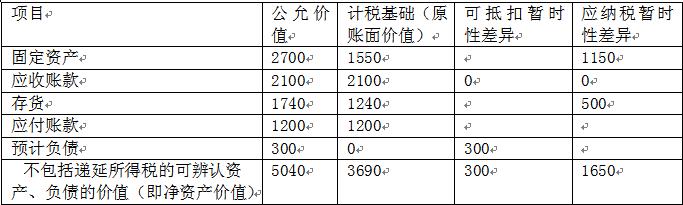 假设该项合并符合税法规定的免税合并条件,购买日各项可辨认资产、负债的公允价值及其计税基础如下表: