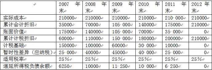 【例17】B公司于20×6年末购入一台机器设备,成本为210 000元,预计使用年限为6年,预计净残值为0。会计上按直线法计提折旧,因该设备符合税法规定的税收优惠条件,计税时可采用年数总和法计列折旧,假定税法规定的使用年限及净残值均与会计相同。假定该公司各会计期间均未对固定资产计提减值准备。