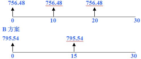 A方案的项目计算期为10年,B方案的项目计算期为15年,最小公倍数为30