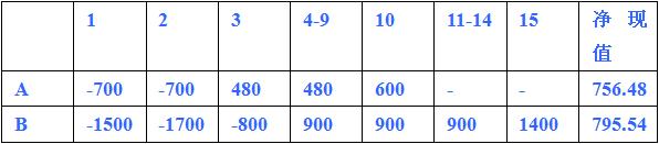 (4)比较调整后的净现值,选择调整后净现值大的方案为最优方案