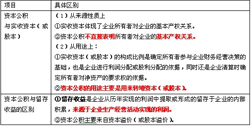 (二)资本公积与实收资本(或股本)、留存收益的区别