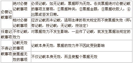 3、票据记载事项。票据记载事项可以分为必要记载事项、任意记载事项、不得记载事项等。