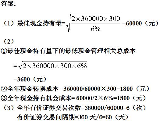 (3)计算最佳现金持有量下的全年有价证券交易次数和有价证券交易间隔期。