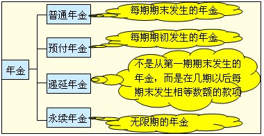 年金:一定时期内等额、定期的系列收支。具有两个特点:一是金额相等;二是时间间隔相等。