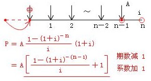 方法一:若向前延长一期,起点为-1,则可看出由(-1~n-1)刚好是n个期间,套用普通年金现值的计算公式,得出来的是在第-1期期末的数值A(P/A,i,n),为了得出第0点的数值,P=A(P/A,i,n)(1+i)