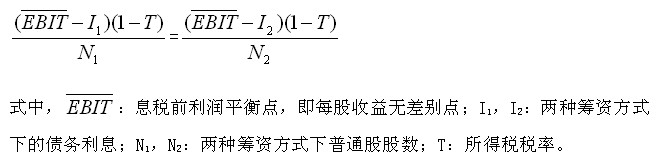 方法原理每股收益无差别点法是利用每股收益的无差别点进行的。所谓每股收益无差别点,是指每股收益不受融资方式影响的息税前利润水平(也可以用销售收入水平表示)。根据每股收益无差别点,可以分析判断在什么样的息税前利润水平下适于采用何种资本结构。