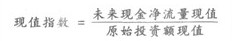 现值指数(Present Value Index)是投资项目的未来现金净流量现值与原始投资额现值之比。计算式为: