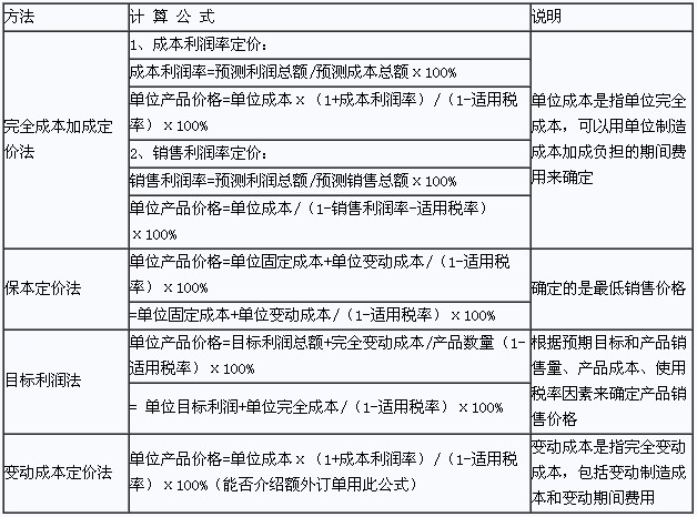 中级会计职称考试《中级财务管理》:产品定价方法