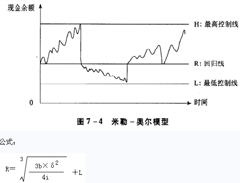 思路:企业可以根据历史经验和现实需要,测算出一个现金持有量的控制范围,即制定出现金持有量的上限和下限,将现金量控制在上下限之内。当现金量达到控制上限(H)时,用现金购入有价证券,使现金持有量下降到(R)。当现金量降到控制下限(L)时,则抛售有价证券换回现金,使现金持有量回升到(R)。若现金量在控制的上下限之内,便不必进行现金与有价证券的转换,保持它们各自的现有存量。
