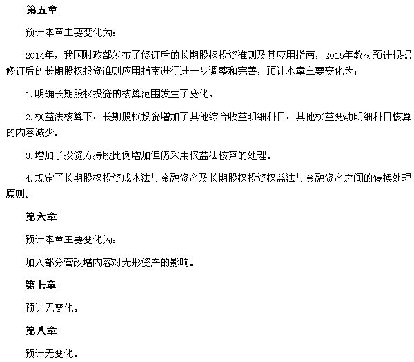 2015年中级会计职称《中级会计实务》考试教材变化预测