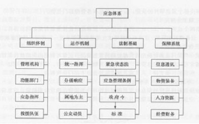 一个完整的应急体系应由组织体制、运作机制、法制基础和应急保障系统4部分构成,如图7—1所示。