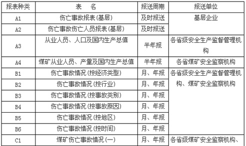 (2)伤亡事故情况表Bl―表B6由各级安全生产监督管理机构、煤矿安全监察机构汇总上报。