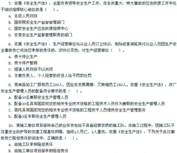 2010年度全国注册安全工程师执业资格考试试卷 $lesson$