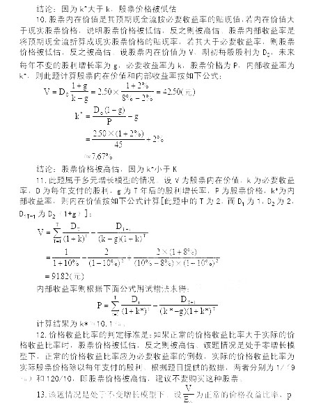 1.影响债券定价有内部因素,也有外部内素。内部因素主要包括:第一,期限长短。一般期限越长,价格易变性越大。第二,息票利率。息票利率越低,其价格易变性一般也越大。第三,提前赎回规定。提前赎回规定在财务上对发行人是有利的,因此具有较高提前赎回可能性的债券应具有较高的息票利率,其内在价值就较低。第四,税收待遇。一般来说,免税债券的到期收益率比类似的应纳税债券的到期收益率低。第五,市场性。市场性好的债券与市场性差的债券相比,一般具有较低的到期收益率和较高的内在价值。