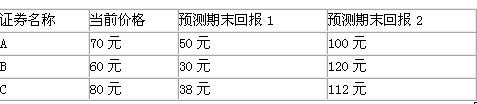 例:假定市场中存在证券A、B、C,其相关情况如下:
