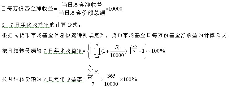 1、日每万份基金净收益的计算。根据《货币市场基金信息披露特别规定》,货币市场基金日每万份基金净收益的计算公式: