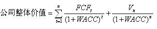 式中, 为企业自由现金流量;Vn为n时刻目标企业的终值。