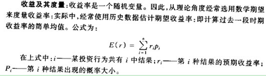 证券A的收益率为rA,证券B的收益率为rB,证券组合的期望收益率E(rP)和收益率的方差:教材第317页,公式7.1和7.2