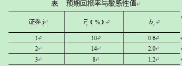 设想一个投资者拥有三种证券,其投资于每种证券的当前市值均为50000元,此时该投资者可投资的财富为150000元。这三种证券的预期回报率和敏感性如表所示。