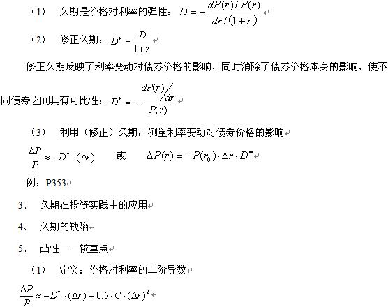 熟悉债券资产组合的基本原理与方法,掌握久期的概念与计算,熟悉凸性的概念及应用。