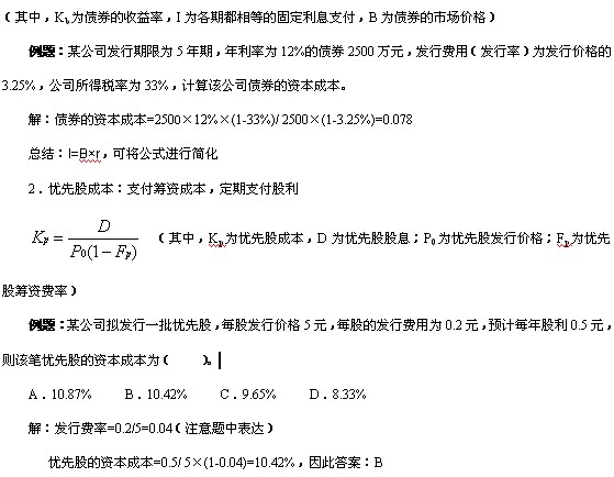 2.融资成本=融资费用(手续费)+使用费用(支付的报酬)