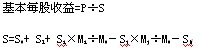 稀释每股收益=[P+(已确认为费用的稀释性潜在普通股利息-转换费用) ×(1-所得税率)] / (S0+ S1+ Si×Mi÷M0-Sj×Mj÷M0-Sk+认股权证、股份期权、可转换债券等增加的普通股加权平均数)