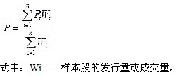 2.加权股价平均数。加权股价平均数也称加权平均股价,是将各样本股票的发行量或成交量作为权数计算出来的股价平均数。其计算公式为:
