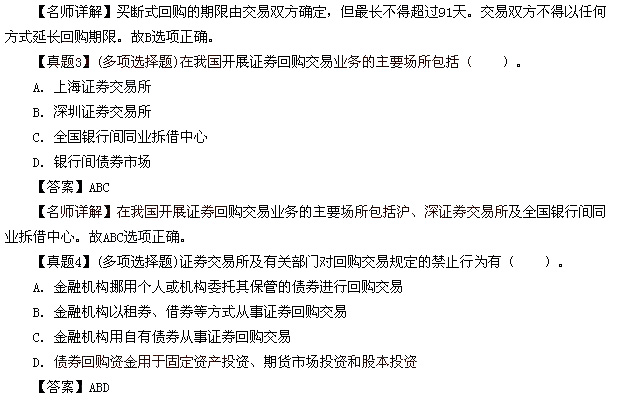 摘要 证券从业《证券交易》第九章债券回购交易真题