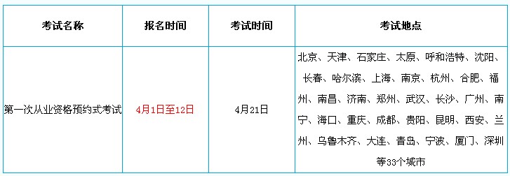 摘要 2013年第一次证券从业资格预约式考试报名时间