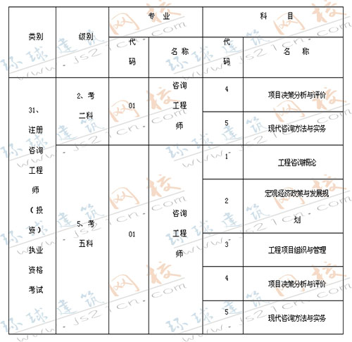 2007年度注册咨询工程师(投资)执业资格考试科目及其代码对应表