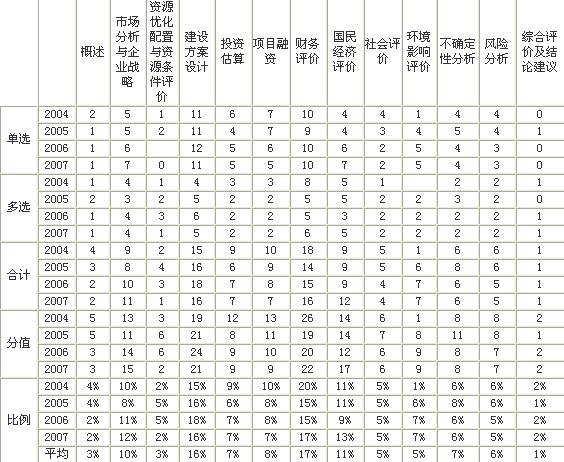 根据历年考试各章的分布情况来看,第四科目项目决策分析与评价考核比较集中,主要分为三个层次: