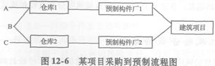 图形技术首先要建立一个工程项目总流程图与各分流程图,要展示项目实施的全部活动。流程图可用网络图来表示,也可利用WBS来表示。图12—6表示了某一项目从采购到预制构件的简单流程,它的潜在损失风险如下: