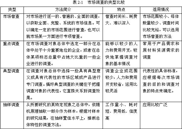 [解析]对市场调查的几种类型应该通过对比来记住特点、适用范围等内容。关注重点调查与典型调查的区别,重点调查的对象是针对的是企业,典型调查针对的是市场区域或产品。