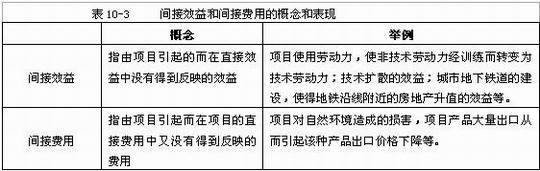 间接效益和间接费用的概念和表现如下表10-3所示。