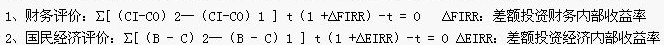 (一)差额投资内部收益法 差额投资内部收益率:2种方案各年净现金流量差额现值和为0的折现率![]()