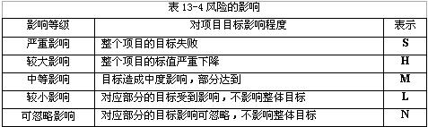 按照风险发生后对项目的影响大小,可以划分为五个影响等级。如下表13-4所示:
