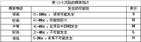 按照风险因素发生的可能性,可以将风险概率划分为五个档次如下表13-5所示: