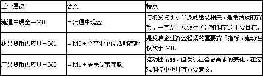 按照流动性的不同,我国目前将货币供应量分为三个层次: