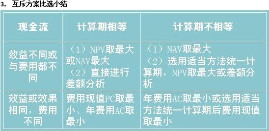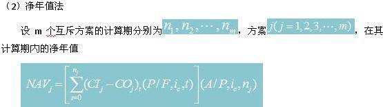 (对于仅有或仅需要计算费用现金流量的互斥方案,可以参照净年值法,用费用年值指标进行比选。判别标准为:费用年值最小的方案为相对最优方案 )