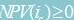 各项目的NPV或IRR,选择所有