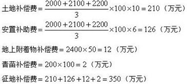 6、某建设项目,需要征用耕地100亩,该耕地被征用前三年平均每亩年产值分别为2000元、2100元和2200元,土地补偿费标准为前三年平均年产值的10倍;被征用单位人均占有耕地1亩,每个需要安置的农业人口的安置补助费标准为该耕地被征用前三年平均年产值的6倍;地上附着物共有树木2400棵,补偿标准为50元/棵,青苗补偿标准为200元/亩,则该征地补偿费为( )。