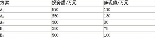 10、某企业计划2008年投资两个项目,项目A和项目B,项目A有3个备选方案:A1,A2,A3。项目B有2个备选方案:B1,B2。各个方案的投资额和净现值如下表所示。所有被选方案计算期相同,基准收益率为10%,若该企业的资金限额是1000万,则应选择以下选项中的( )项目组合。