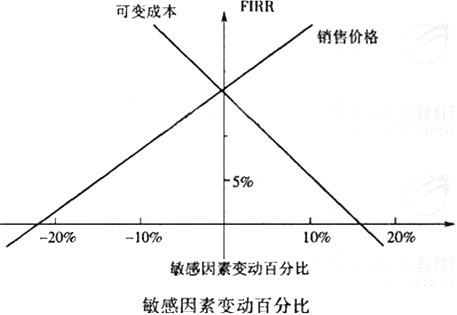 2、某投资项目的敏感性分析选定财务内部收益率为分析指标,销售价格和可变成本为不确定因素,分析结果如下图所示。如果项目的基准收益率为10%,则根据该图可变成本的临界点大约为( )。 (2008年真题)
