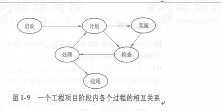 需要指出的是,在过程控制过程中,上述的PDCA循环规则,着重说明管理工作是一个持续改进的过程,它没有包括项目的启动和收尾两个子过程。实际全过程可以用图1-9表示。$lesson$