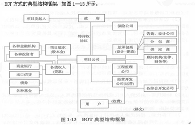 自1984年土耳其总理Targut Ozal提出了建造一运营一移交(Build―Operate―Transfer,BOT)方式,并在许多国家和地区采用以来,BOT方式发展很快,已演变出多种引申方式。