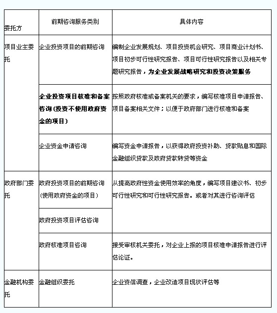 不同委托方委托的项目前期阶段咨询