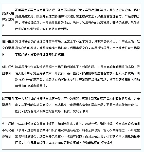 主要是以下五种:资源利用开发型项目、填补市场空白型项目、科技领先型项目、配套服务型项目、公共领域市场化运作项目,各行业的特点要理解,在题目中能简单的论述。