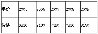 10.某类房地产2005年~2009年的价格见下表,各年增长量的权重分别为0.1、0.2、0.2、0.5,则利用平均增减量法预测该类房地产2010年的价格为( )元/m2。