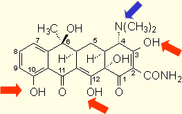 ⑶差向异构化:pH2~6时,C4二甲氨基发生可逆性的异构化反应